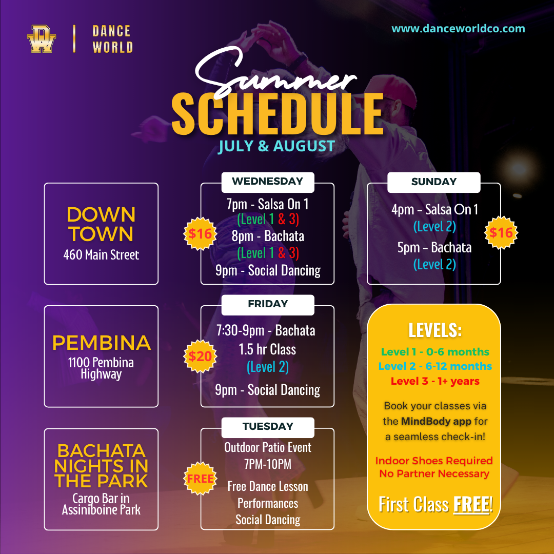 Welcome to Dance World Co., Winnipeg’s vibrant hub for Salsa and Bachata classes! Whether you're stepping onto the dance floor for the first time or looking to refine your moves, our studio is the perfect place to build confidence, have fun, and connect with an amazing community.